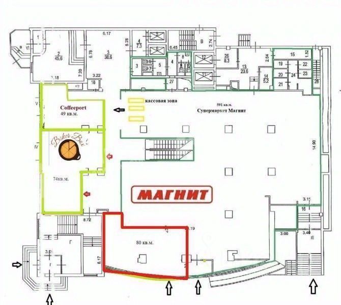 Арендатор получает преимущества размещения в активно посещаемом месте, где на первом этаже уже успешно работают супермаркет "Магнит" и кофейня "Кофе порт", а второй этаж занимает магазин одежды Familia.