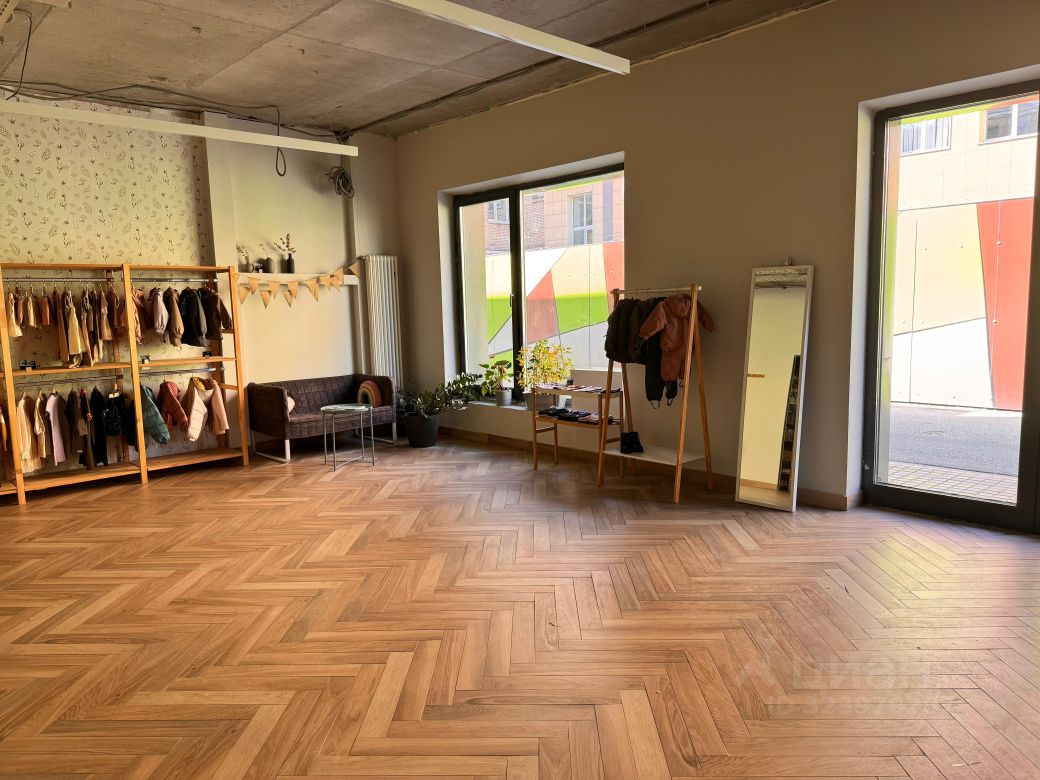 площадь разделена на большой общий зал, санузел и помещение свободного назначения.
