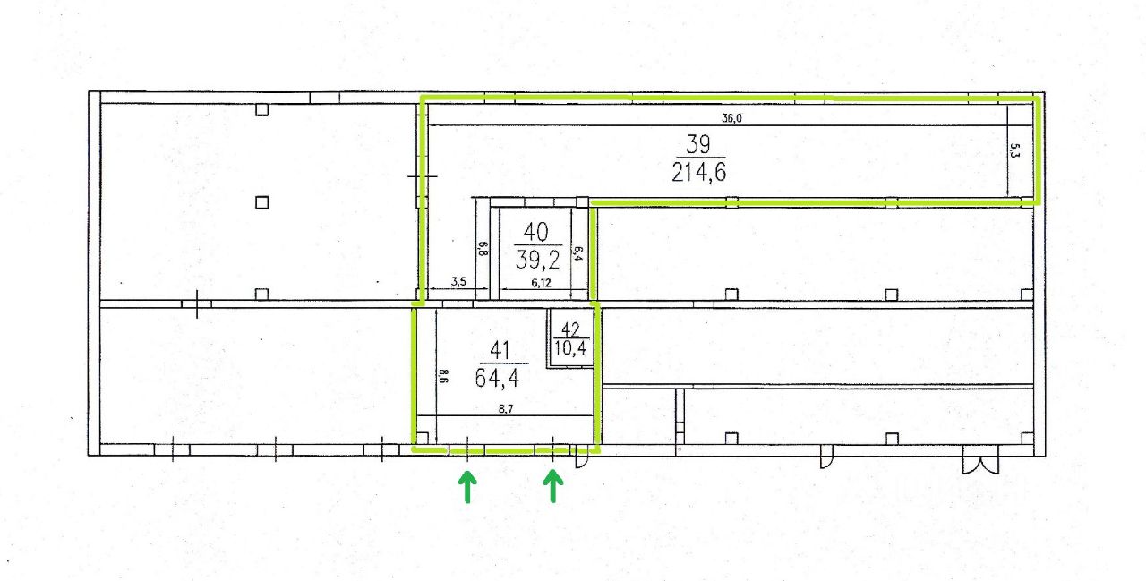 Планировка (см. фото): три зала и офис 10 м2,