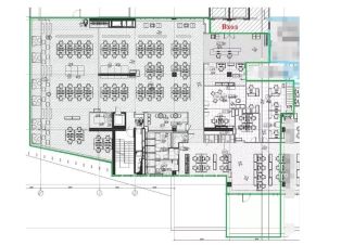Офис площадью 395,8 м2 располагается на 2 этаже (Площадь с учетом коэффициента Мест Общего Пользования 1,12)