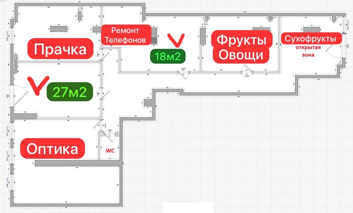 Помещение идеально подойдет под любой вид деятельности: Салоны красоты, Аптеки, Оптика, Кофейни, Пекарни, Пиццерии, Суши, Алкогольные магазины, Центры услуг, Детские магазины и т.д., рассмотрим любой формат!