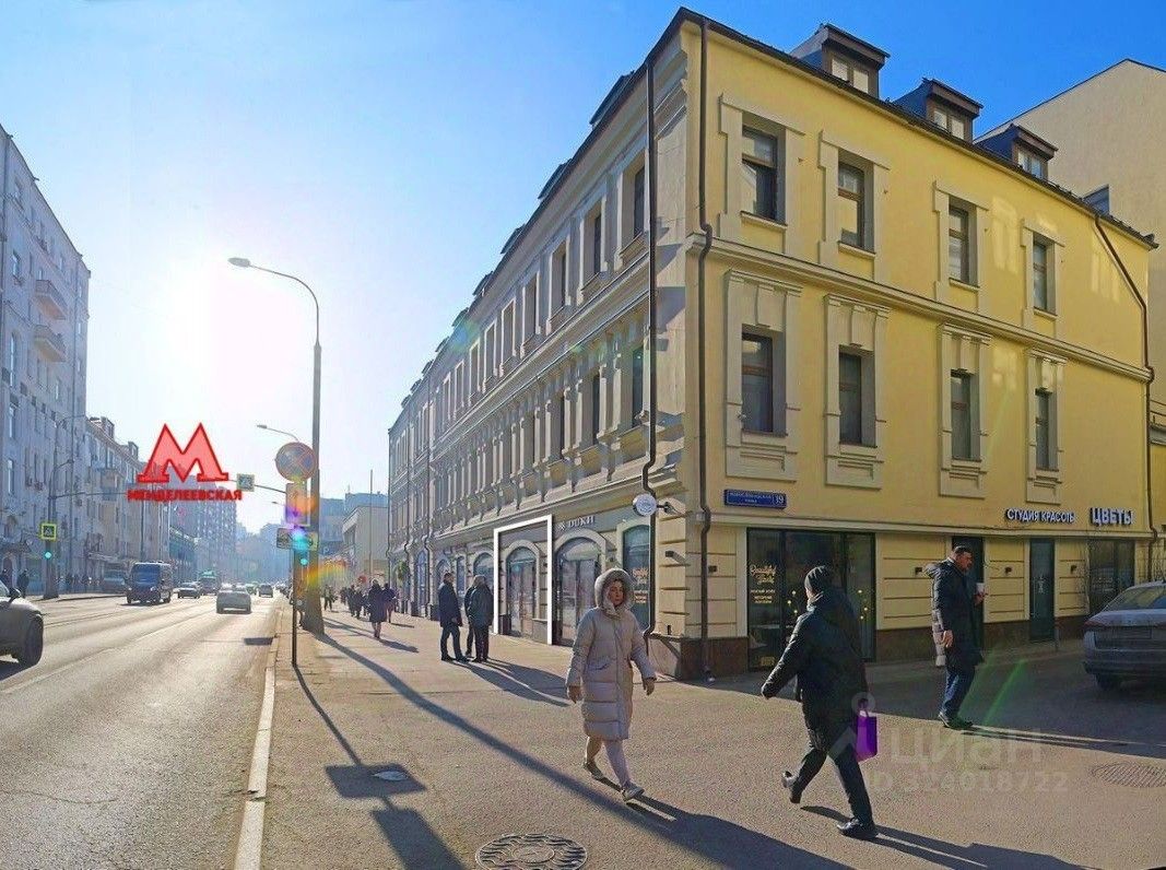 Сверхинтересный пешеходный трафик до 4 000 человек в час пик. Объект расположен в 100 м от метро Менделеевская, в оживленном деловом районе — одной из самых развитых, дорогих и востребованных бизнес-локаций Москвы. В непосредственной близости от здания находятся 8 бизнес-центров и 4 крупных федеральных университета: РГГУ, РХТУ, МГТУ и РУТ (МИИТ). Развитая торговая инфраструктура вокруг, Интенсивный пешеходный и автомобильный трафик вдоль помещения.
