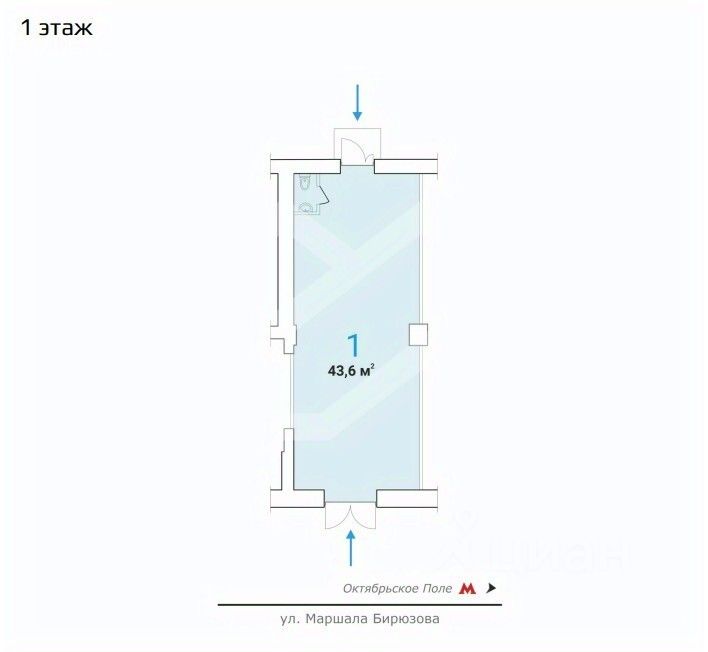 1084664 . Предлагаем торговое помещение формата Street Retail, площадью 43,6 кв. м., расположенное на первом этаже жилого дома.