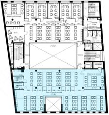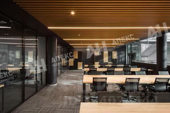 Планировка смешанная, но большая часть рабочих мест в формате open space. В блоке оборудованы переговорные комнаты и принтерная зона.