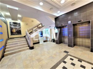 Здание находится на первой линии. Презентабельная входная группа. Круглосуточная охрана и видеонаблюдение. Вход по пропускам. В здании два лифта, комфортная зона ожидания на 1 этаже, столовая, кафе, магазины, банкомат.
