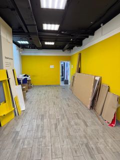 Первый этаж, общий вход с Пекарней и Пунктом выдачи Ozon , открытая планировка, высота потолка 3м , Электрическая мощность по запросу. Место для размещения рекламы на фасаде.