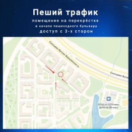 - с другой стороны - помещение находится в начале главного пешеходного бульвара, который в перспективе станет любимым местом прогулок жителей и гостей.