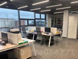 . Офис расположен на 6-м этаже, смешанная планировка (8 кабинетов, зона open-space, кухня и свои с/у), стандартный офисный ремонт. Установлена приточно-вытяжная вентиляция и системы кондиционирования.