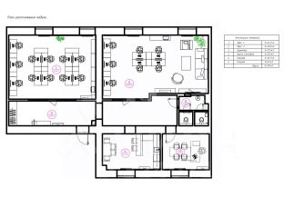 Офис имеет кабинетную систему, которая включает два больших open-space кабинета, которые можно разделить перегородками на отдельные рабочие зоны или оформить как кабинет руководителя. Также предусмотрена изолированная кухня с всей необходимой техникой, небольшой отдельный кабинет, зона санузлов и просторный холл, создающий комфортную атмосферу для работы.