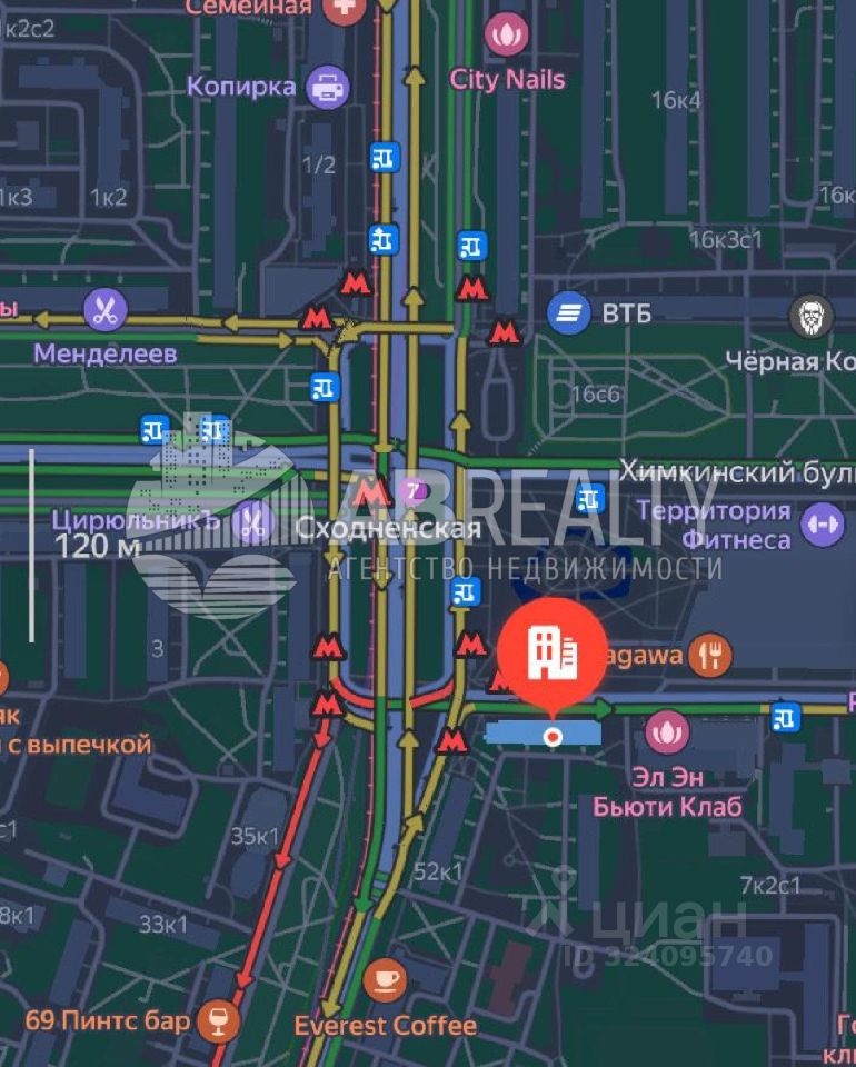 Метро рядом, остановка общественного транспорта Химкинский бульвар в 185 метрах, через дорогу ТЦ Калейдоскоп. Плотное проживание людей вокруг в радиусе 500 м порядка 24 тысяч человек