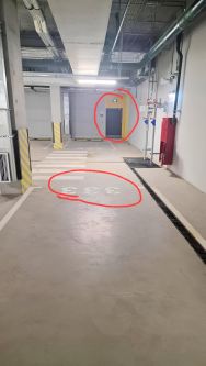 Meстo в 15 метрах от выхода к лифтам и лестнице 4 подъезда. Место расположено у стены но не вплотную, большое пространство для открытия дверей с обеих сторон машины. Место расположено на самом верху паркинга, всегда сухо и удобно.