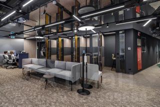 Офис с современной отделкой. На этаже предусмотрены 11 переговорных комнат, 12 online room, 1 board room, конференц-зал на 20 человек, оборудованная кухня, мягкие зоны отдыха, санузлы, гардеробная.