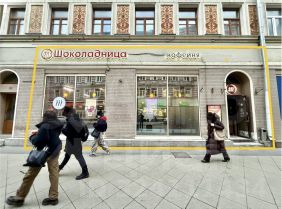 1-2 минуты пешком м. Чистые пруды. Интенсивный пешеходный трафик.