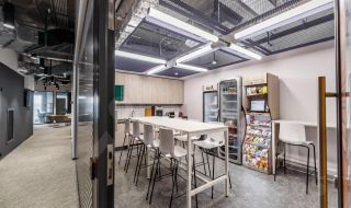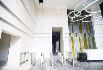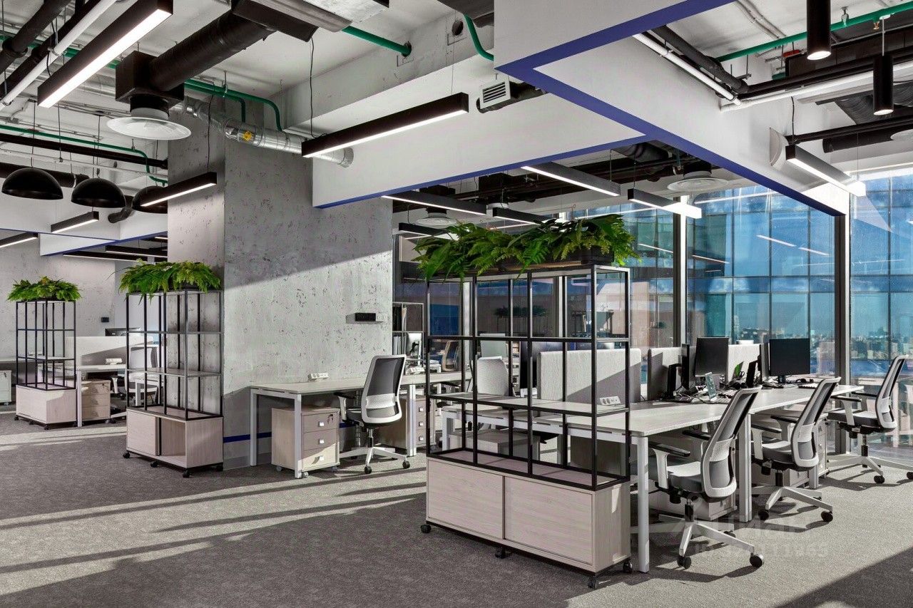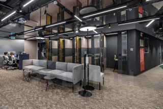 Офис с современной отделкой. На этаже предусмотрены 11 переговорных комнат, 12 online room, 1 board room, конференц-зал на 20 человек, оборудованная кухня, мягкие зоны отдыха, санузлы, гардеробная.