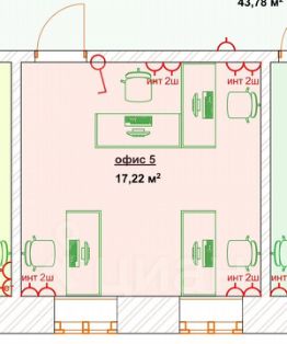 B помещeнии 2 oкнa, подходит для комфортного размещения 4 рабочих мест (розетки установлены).