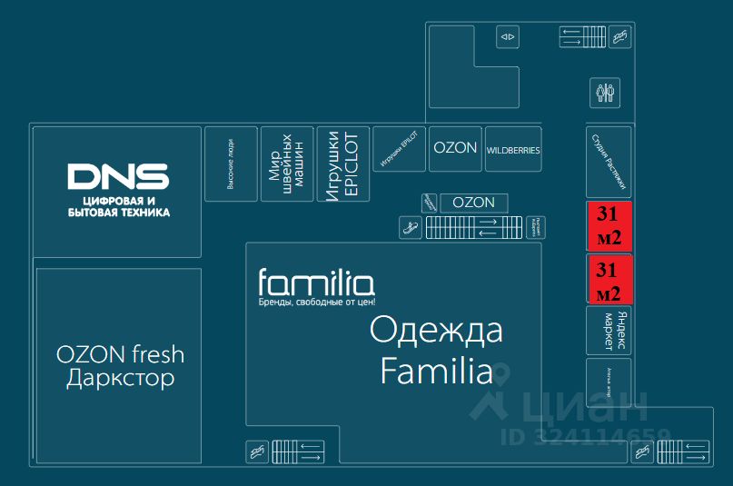 Якорные арендаторы: Перекресток, DNS, Familia, Магнит Косметик, Фикс Прайс.