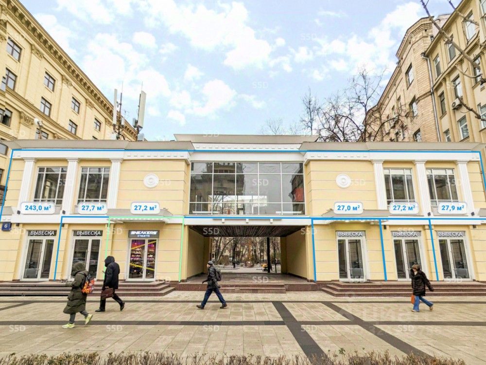 Предлагается в аренду помещение, общей площадью 243 м2, 2ой этаж нежилого здания, расположенного по адресу: г. Москва, Большая Садовая ул., д. 6, стр. 2, ЦАО, район Пресненский. Шаговая доступность от ст. метро "Маяковская" - 3 минуты пешком. Вход с Садового кольца. Высокий рекламный потенциал и место для размещения вывески. Отличная пешеходная и транспортная доступность. Сверхинтенсивный пешеходный и автомобильный трафик. Отлично подойдёт под любой вид деятельности - торговое помещение, магазин, ресторан, кафе, аптека, салон красоты, банк, офис продаж, кофейня и др.