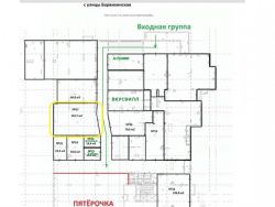 1-ый этаж жилого 10-этажного дома. Общая площадь 102,7 м², Прикассовая зона супермаркета "Пятёрочка". Отдельный вход, витринное остекление, открытая планировка. Мощность электроэнергии 28 кВт. Высота потолков - 4 м.