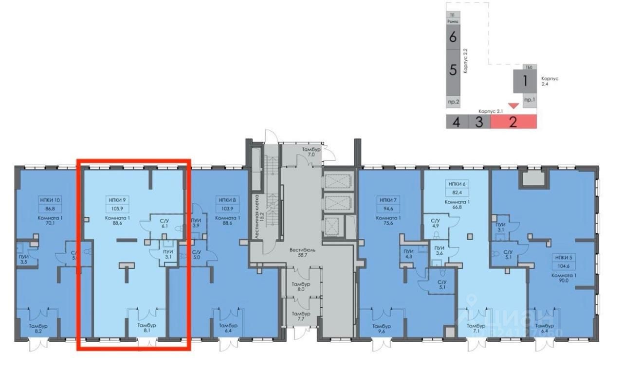 Помещение на 1 линии - 105.9 м²
