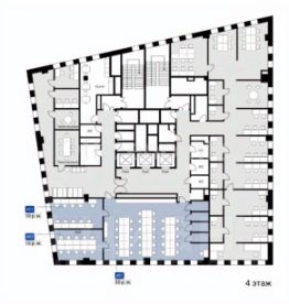 Сервисный офис с дизайнерской отделкой, рассчитан на 53 рабочих мест, включает переговорные комнаты, мягкую зону, гардероб, кофепоинт. В стоимость включено использование общих зон, 1 час переговорных в день, доступ на летнюю террасу на крыше. Центральная система кондиционирования, приточно-вытяжная система вентиляции. В наличии подземная парковка (22 800 руб. в месяц за м/место).