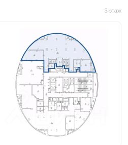 В блоке большая рабочая зона open space, несколько кабинетов, санузлы и кухня.