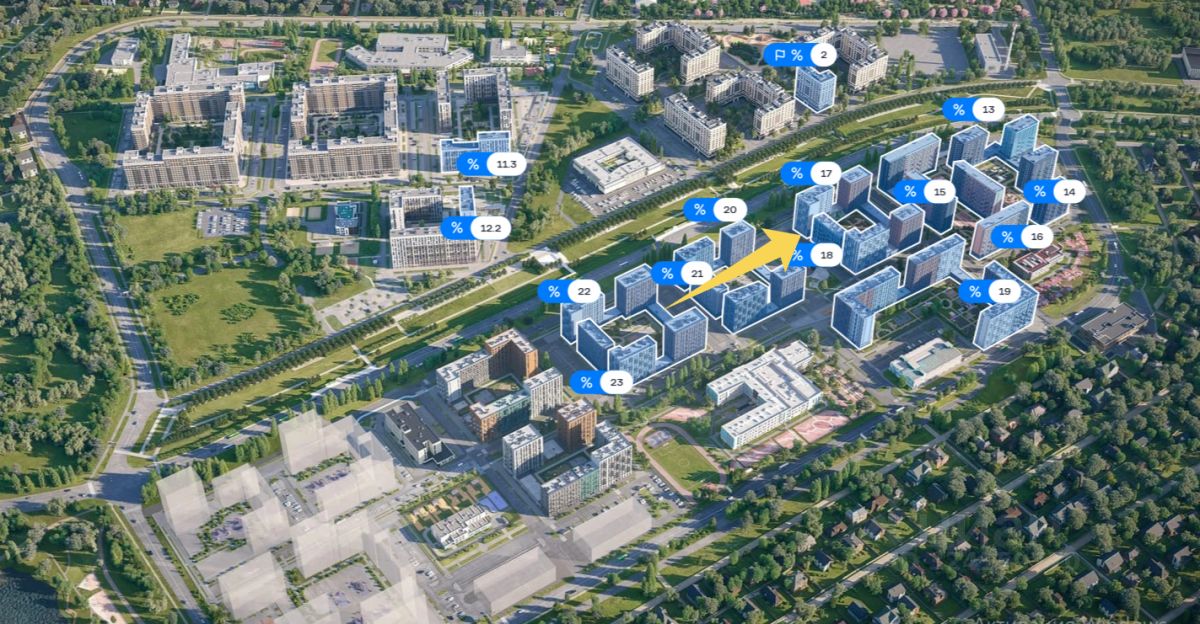 Жилой комплекс с высокой плотностью застройки, рассчитан на 10 тысяч квартир.