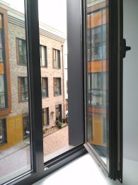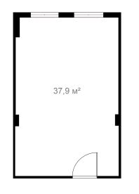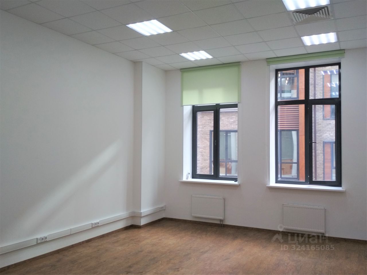 Площадь - 38 м². Второй этаж 4-этажного офисного здания. Окна выходят на солнечную сторону, во внутренний двор. Высокий потолок. Кондиционер.