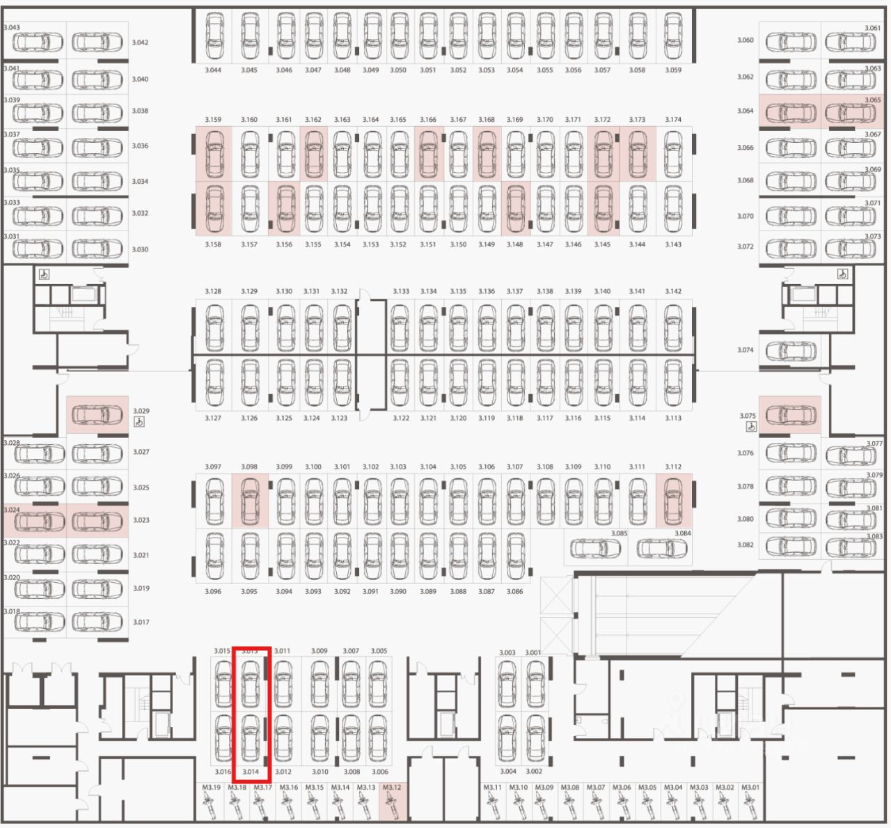 Сдается семейное машиноместо 13, 14 Площадь: 29 м2 Коммунальные платежи включены Расположение машиноместа на фото