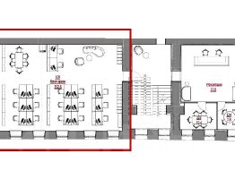 2-й этаж - 98,6 кв.м, кабинетная планировка, сделан качественный ремонт, 17 рабочих мест - 739 500 рублей в месяц.