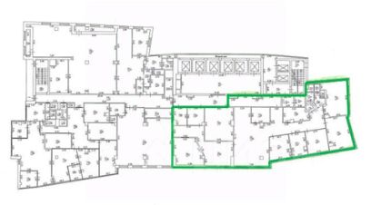 Описание помещения: Отдельный офисный блок с санузлами, серверной, кухней.
