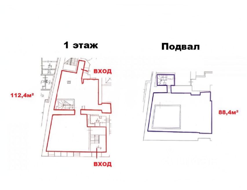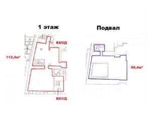 - Два уpoвня: подвал 88,4м², пеpвый этаж 112,4м².