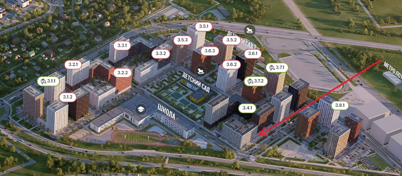 Второй дом от метро! Объект в прямой видимости, вдоль народной тропы, рядом школа и детский сад, в ЖК напротив нет коммерции!