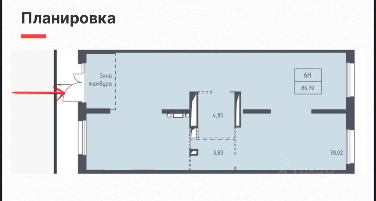 Помещение сдаётся без ремонта, предусмотрены арендные каникулы.