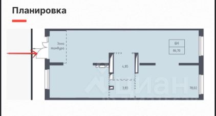Сдается торговое помещение площадью 87 м² на первом этаже с витринными окнами и отдельным входом с фасада.
