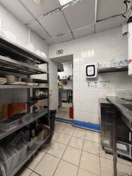 два зала (123,7 м и 30 м), подсобные помещения и три санузла; высота потолков 4,5 м; выделенная электрическая мощность 100 кВт;
