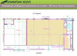 1 этаж - 330 кв.м., отдельный вход с улицы, открытая планировка.