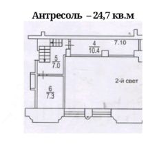 антресоль — 24,7 м² высотой 2,25 м, которую можно использовать под офис, склад или зону для персонала.