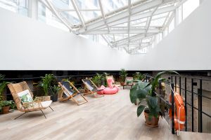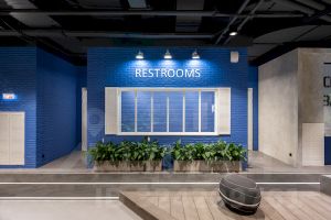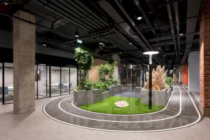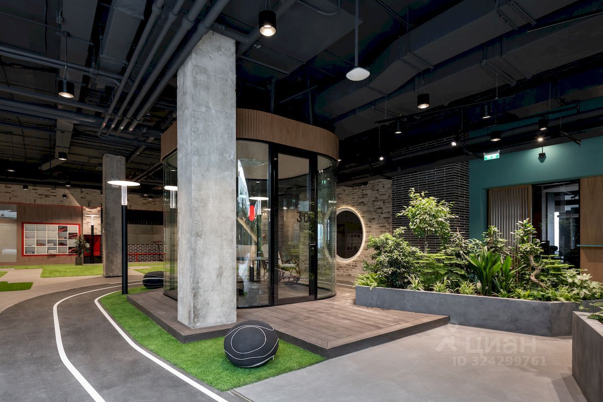 Парк окружён городом: более 40 переговорных комнат, санузлы, гардеробные и множество необычных помещений — библиотека, каминная, кофейня. Все они сделаны разными, как в реальном городе.