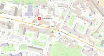 Здание располагается на первой линии, рядом с метро. Интенсивный автомобильный и пешеходный трафик вдоль помещения.