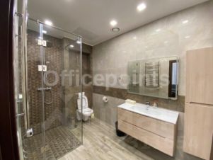В помещении стандартная офисная отделка, кабинетная планировка. Приточно-вытяжная система вентиляции, центральная система кондиционирования. В наличии наземная парковка.
