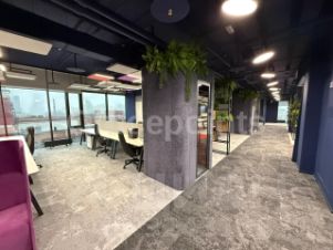 Помещения с дизайнерской отделкой, смешанная планировка, 178 рабочих мест. Приточно-вытяжная система вентиляции, центральная система кондиционирования. Наземная парковка (25 000 руб. в месяц за м/место).