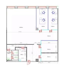 Смешанная планировка:опенспейс, 4 кабинета, 2 санузла, кухня.