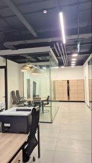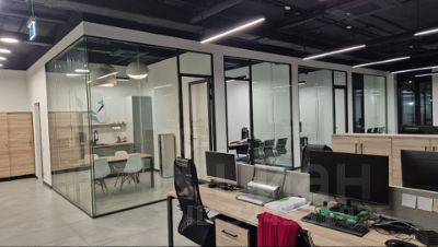 В офисе 4 отдельных стеклянных кабинета, с дверью с доводчиками. Отдельно оборудована кухня, а также небольшая кладовая.