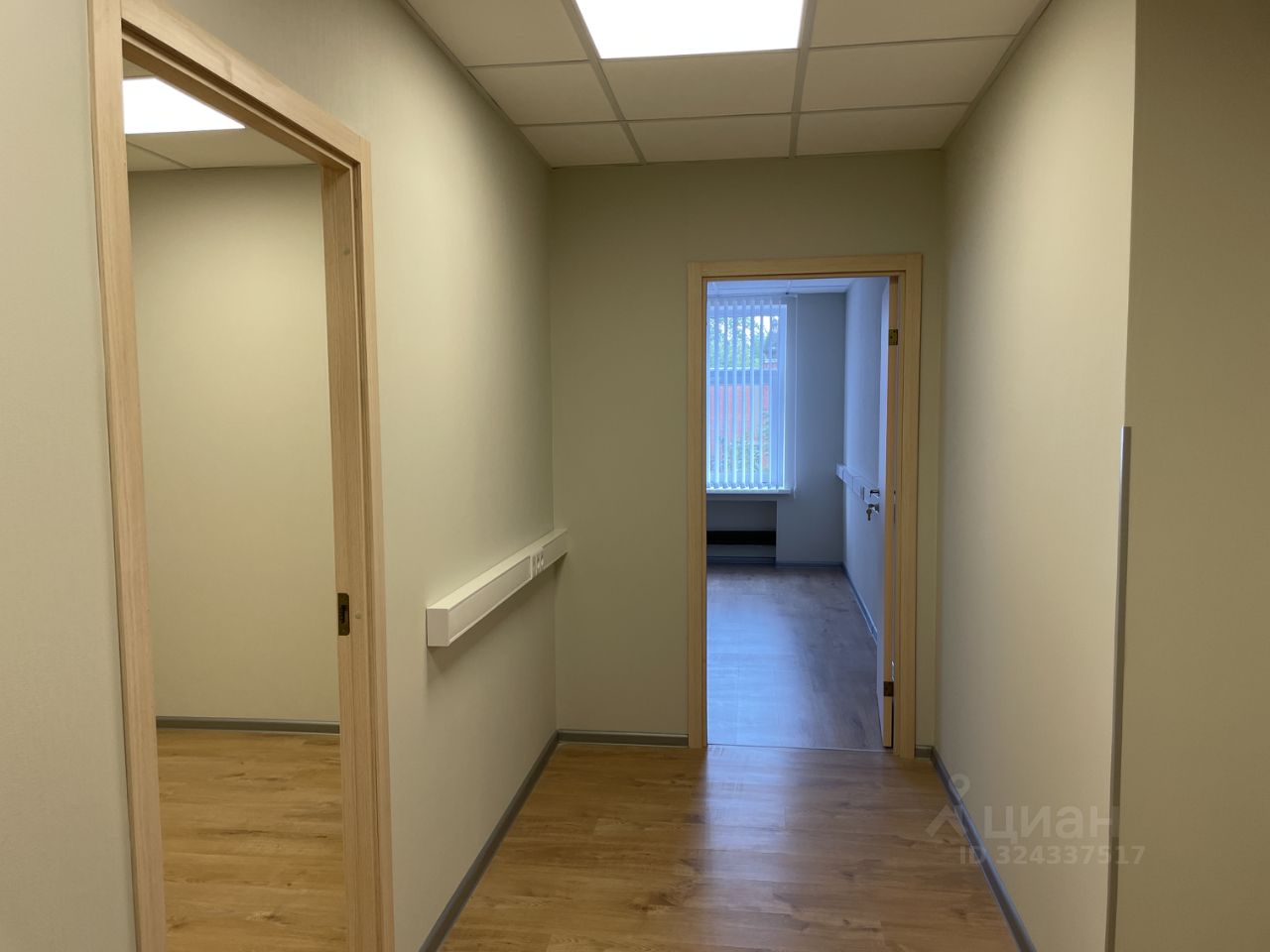 Офис на одну комнату площадью 77 м2, располагается на четвертом этаже. Современное помещение со светлыми стенами и оптимизированным освещением.