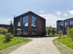 Это здание одно из четырех зданий инфраструктурных объектов комплекса (в т.ч. частная школа, торгово-офисное здание с товарами и услугами). В настоящее время рядом уже работает салон-груминг для животных, студия йоги-пилатеса, пункты выдачи, салон красоты, творческая мастерская, кофейня.