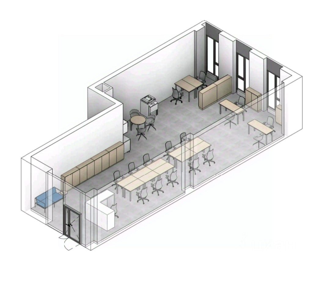 Формат open-space, идеально подходит для размещения команды. Панорамное остекление с видом во двор создаёт ощущение простора, тишины и уюта.