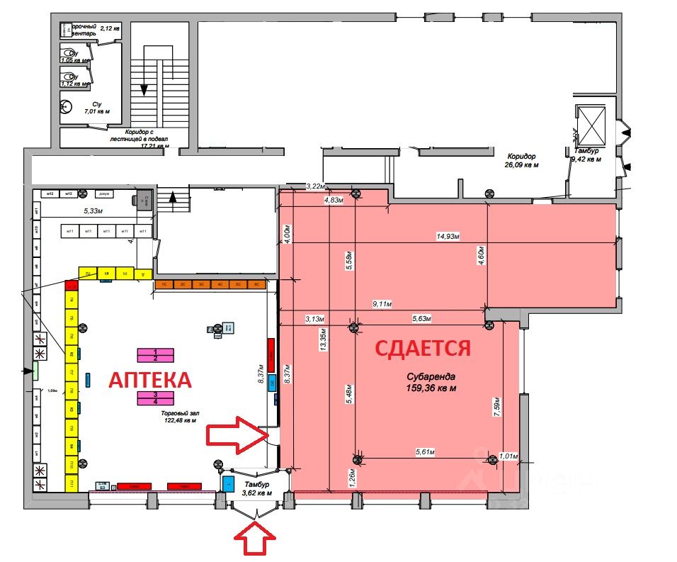Сдается часть помещения аптеки Ригла, площадью 160 кв.м. (смотрите план и фото). Стены построим после нахождения арендатора. Рекламное место на фасаде предоставляется. В арендную плату все включено. Мощность 11,8 кВт. Рассмотрим все предложения, кроме общепита. Звонки принимаются в рабочие дни с пн-пт с 9.15 до 18.00.