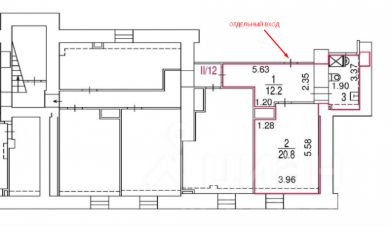 Площадь: 39.4 Этаж: -1 Планировка : кабинетная Высота потолков: 3