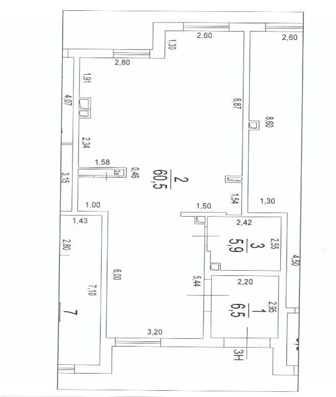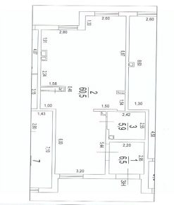 Общая площадь 72,9 м.кв., высокие потолки 4 метра, с ремонтом.