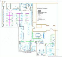 Описание помещения: Планировка включает - опен спейс на 19 рабочих мест, 3 кабинета без мебели, кухня, 3 санузла, архив и серверная.